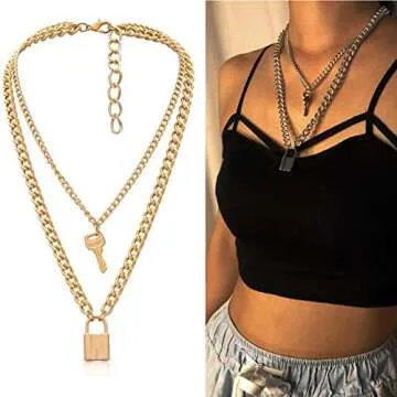 YERTTER Key with Lock Pendant Punk Layering Cable Chain Choker Necklace Boho Jewelry Set Layered Statement Chunky Chain Necklace for Women Man