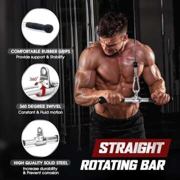One of the standout features of this straight bar is its 360-degree swivel capability. This ensures smooth, effortless rotation during each exercise, which alleviates strain on your wrists and joints. It's compatible with a range of cable machine systems, making it a versatile choice for both home and commercial gym setups, effectively catering to all levels of fitness enthusiasts.