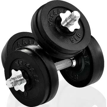 Show moreYes4All Adjustable Dumbbell Set - 60lbs is your ultimate workout companion – thoughtfully designed for both beginners and seasoned fitness enthusiasts. This versatile dumbbell set consists of two sturdy 14"x1" handles, four 5-pound plates, four 8-pound plates, and four secure collars, allowing you to customize your workout routine with a total weight flexibility from 1.25 to 60 pounds. Whether you’re working on muscle strength, endurance, or want to enhance your overall fitness, these adjustable dumbbells will meet all your training needs.