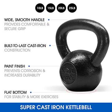 Show moreIntroducing the Yes4All Solid Smooth Powder Coated Cast Iron Kettlebell Weight Set, an exceptional fitness solution that comes in a comprehensive set of weights including 10, 15, 20, and 25 lbs. Each kettlebell is crafted from high-quality solid cast iron, ensuring unmatched durability and longevity. With no welds, weak spots, or seams, these kettlebells promise a stable and safe workout experience. Whether you're training indoors or outdoors, their robust construction allows you to push your limits and achieve your fitness goals effortlessly.