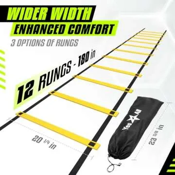 Yes4All Speed Agility Ladder Training Equipment with Carry Bag - 12 Rungs Yellow