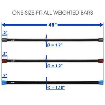 Show moreThe Yes4All Total Body Workout Weighted Pilates Bar is your ultimate workout companion, especially designed for enthusiasts who are serious about strength training, yoga, and fitness therapy. Available in weights of 10lbs, 15lbs, and 20lbs, this set of 3 bars gives you the versatility needed to challenge yourself and reach your fitness goals. Each bar measures 48 inches long and features a heavy-duty steel core construction, ensuring enhanced toughness, durability, and stability. With proper care, these bars will not bend or break, allowing for repeated use without the worry of deterioration.