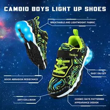YESKIS Kids Light Up Shoes for Boys Camoio LED Flashing Lightweight Mesh Breathable Adorable Running Tennis Sneakers for Toddler Black Size 8