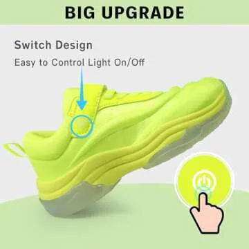 YESKIS Kids Shoes Boys Light Up Shoes with Switch Fizzzy LED Running Tennis Sneakers for Big Kid Lime 4