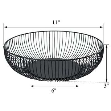 Show more Introducing an essential addition to your kitchen and home decor – a stunning set of 2 metal fruit baskets that blend functionality with style. Crafted from premium wire curved iron, these 11'' x 6'' x 3'' baskets make for the perfect storage solution for a variety of fruits including apples, oranges, strawberries, and more. The large capacity allows for an abundant display that not only keeps your fruits organized but also turns them into a beautiful centerpiece for your countertop.