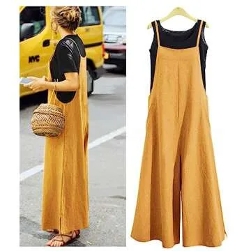 YESNO Women Casual Loose Boyfriend Bib Pants Summer Wide Leg Cotton Jumpsuits Rompers with Pockets XS-5X (M PZZTYP2 Ginger)