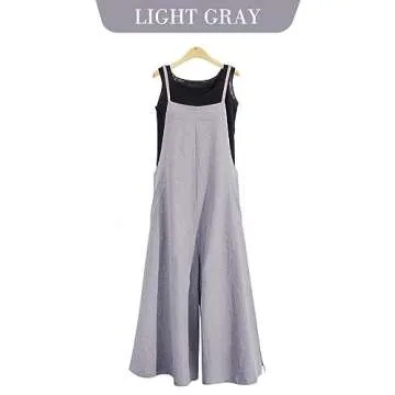 YESNO Women Casual Loose Long Bib Pants Wide Leg Jumpsuits Baggy Cotton Rompers Overalls with Pockets (S PZZTYP2 Light Gray)