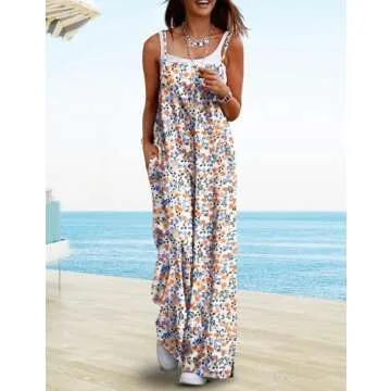 YESNO Women's Summer Boho Casual Jumpsuits Wide Leg Overalls Floral Print Baggy Rompers with Pockets XL PZZCR 377