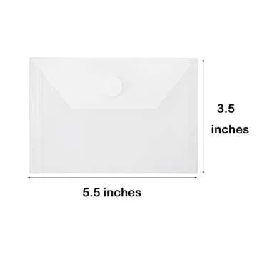 Show moreIntroducing the YESSART 3x5 Plastic Envelopes – your ultimate solution for organized storage! Designed meticulously with environmental protection materials, these pocket envelopes are not just sturdy but also waterproof and tear-resistant, ensuring your items remain safe and clean. Each envelope measures 3.5 x 5.5 inches, perfectly crafted to fit seamlessly into your purse, small bags, or notebooks. Their hook and loop closure provides a secure fastening mechanism that holds your contents snugly, making them ideal for on-the-go organization.