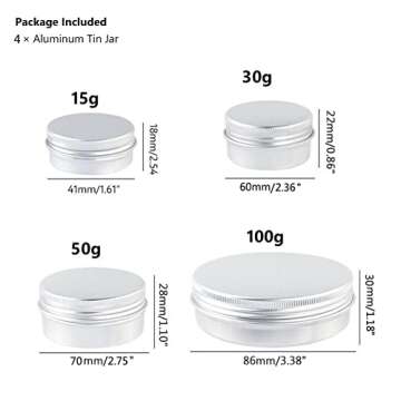 YESTOO 4 Pack Aluminum Empty Round Tins Refillable Container, Silver Metal Candle Tins with Screw Lid for Storing Spices, Candies, Lip Balm, Candles Silver