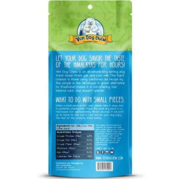 Show more Introducing the Yeti Dog Chew – a supreme treat revolutionizing the dog chewing experience! Crafted from 100% organic yak and cow milk, these Yak Cheese Himalayan Dog Chews are designed with your furry friend’s health in mind. Free from artificial additives, chemicals, and preservatives, they offer a wholesome and safe alternative to conventional dog treats. Each chew is rigorously crafted to ensure a superior protein-packed snack that meets the highest quality standards, making it the ideal choice for health-conscious pet owners.