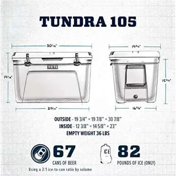 Show moreThe YETI Tundra 105 is not just a cooler; it's an adventure companion built for those who prioritize performance and durability. With its impressive height, this cooler allows you to stack meats and drinks with enough room for ice on top, ensuring everything remains perfectly chilled. The PermaFrost Insulation provides up to 3 inches of insulation, while the robust FatWall design is certified Bear-Resistant, making it ideal for outdoor excursions. Whether you're camping in the wild or hosting a backyard BBQ, the Tundra 105 is equipped to handle it all.