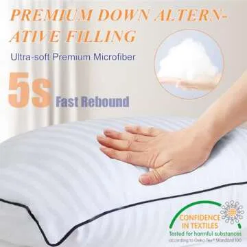 The filling consists of an original down alternative that strikes the perfect balance between softness and support. This means you can enjoy gentle cushioning that doesn’t sacrifice your comfort. Additionally, our pillows are made in an OEKO-TEX Standard 100 certified factory, ensuring that every material used is allergy-free and safe for even the most sensitive individuals.
