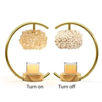 Yeuslor Gold Candle Warmer Lamp for Jar Candles with Adjustable Brightness&Timer,Handcrafted Crystal&Wooden Base,Candle Lamp Luxurious Design+2Bulbs,Home Decoration Electric Candle lamp(C-Shaped)