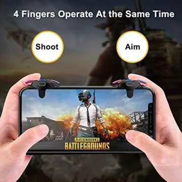 YEVIOR [1 Pair ] Mobile Game Controller Trigger for iPhone Android, PUBG Cellphone Gaming Joystick 4 Fingers Operation, with Sensitive Shoot Aim Keys for Fornite/Knives Out/Rules of Survival