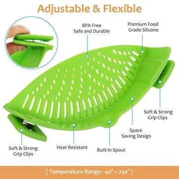 What sets the YEVIOR apart is its user-friendly nature. Simply clip it onto your chosen pot and pour away with confidence! It excels in straining pasta, draining ground meat, and rinsing fruits and veggies, catering to a variety of cooking needs. The flexible design allows it to mold perfectly to the shape of your pot, ensuring that it stays securely in place even during the most vigorous pouring. Cleaning is just as simple—a quick rinse under the tap is all that’s needed to prepare it for the next round of cooking!