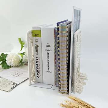 Show more Introducing the YEXEXINM Boho Macrame Bookends – the perfect fusion of style and functionality for your home or office decor. These decorative bookends bring a fresh elegance to your space while keeping your books, records, and magazines organized and upright. Crafted from sturdy metal and adorned with beautiful hand-woven macrame designs, these bookends not only serve a practical purpose but also enhance your interior design with their unique aesthetic appeal. The inclusion of tassels adds an artistic touch, making them a stylish conversation starter in any room.