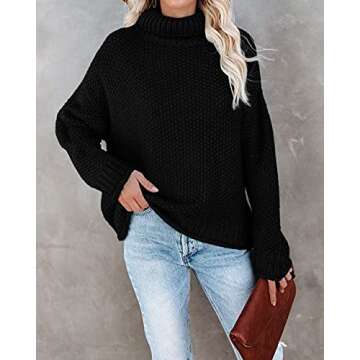 YEXIPO Womens Turtleneck Oversized Sweaters Batwing Long Sleeve Loose Pullover Sweater Chunky Knit Jumper Tops Black