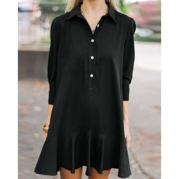 Discover the perfect combination of comfort and style with the YEXPINE Women's Tunic Shirt Mini Dress. Crafted from a high-quality cotton blend, this dress offers a soft and breathable feel, ensuring you stay comfortable whether you're dressing up for a night out or keeping it casual during the day. The long sleeves and button-up front add an element of class, while the beautiful ruffle hem provides that trendy touch that every modern wardrobe needs. Available in a sleek black color and in...