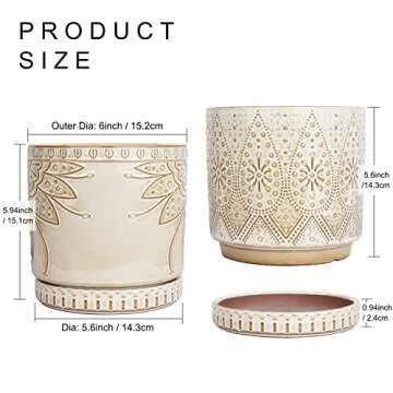 YFFSRJDJ 6 Inch Indoor Plant Pots with Drainage Holes and Saucers, Ceramic Planter for Plants, Flower Pot - Set of 2
