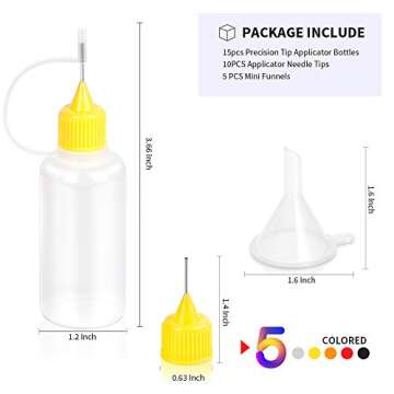 Whether you’re an artist, a crafter, or someone needing precision in everyday tasks, these applicator bottles are widely versatile. Use them for a variety of liquids including glue, glaze, paint, or even oils. The set includes 15 precision tip applicator bottles, complemented by 10 replaceable applicator tips and 5 mini funnels. This combination not only makes your work easier but also enhances your efficiency.