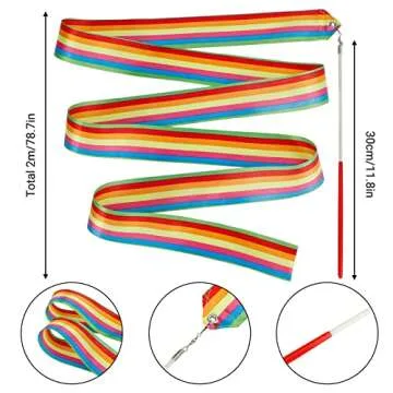 YGEOMER 12pcs Dance Ribbons, Rainbow Gymnastics Ribbon Wands for Kids Dancer, Dance Twirling Sticks Batons Streamers for Artistic Dancing, Talent Shows Dance Floor Party Props