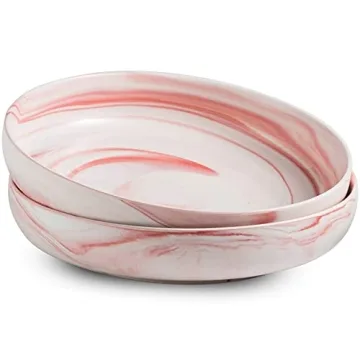 Show moreIntroducing the YHOSSEUN Large Serving Bowl Set, the epitome of elegance and functionality for your dining experience. Crafted from premium ceramic, these bowls boast a generous capacity of 1.9 quarts, making them perfect for pasta, salads, ramen, and much more. The exquisite marble pink design not only elevates your table settings but also adds a timeless touch that makes every meal feel special. Their wide and shallow design ensures that your food stays beautifully displayed while minimizing the risk of spills. Ideal for both casual dinners and sophisticated entertaining, these bowls are set to impress your guests and enhance your culinary presentation.
