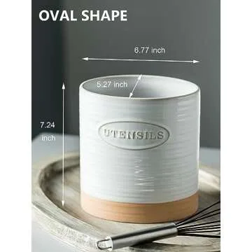 YHOSSEUN Porcelain Utensil Holder for Kitchen Countertop Large Oval Utensil Crock Two-tone Finish Rustic Utensil Caddy
