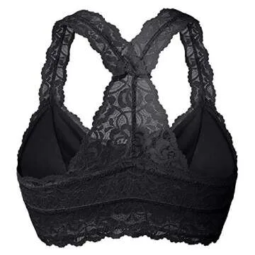 YIANNA Women Black Floral Lace Bralette Padded Breathable Sexy Racerback Lace Bra Bustier Crop Top Wirefree, YA8332-Black-L