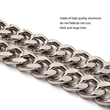 Show more Introducing the Yichain 42'' Substantial Big Metal Cross-Body Chain Purse Strap, a statement piece designed to elevate your accessories effortlessly. Crafted from high-quality polished aluminum, this purse strap offers an exquisite finish that is both shiny and smooth. Measuring at **42 inches long** with a substantial width of **0.9 inches** and a thickness of **0.24 inches**, the large version weighs **0.7 LB**, while the smaller variant retains the same length but has a width of **0.7 inches** and a thickness of **0.2 inches**, weighing **0.5 LB**. Its robust construction ensures a rust-proof and sturdy addition to your bag collection, making it a reliable choice for everyday use.