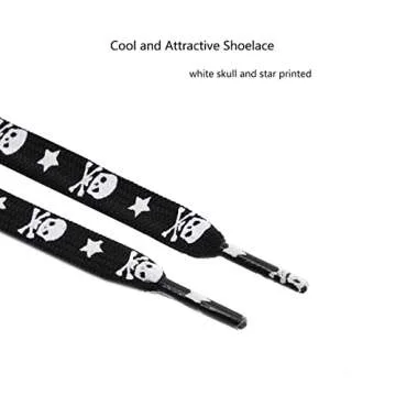 Show more Introducing the Yichain 48'' Flat Fun Printed Shoe Laces—a stylish and practical accessory for your footwear collection. Crafted from 100% premium polyester, these shoelaces are not only visually appealing with their unique black design featuring white skull and star prints, but they are also designed to be durable and reliable. Spanning 48 inches in length and a comfortable 0.4 inches in width, they are perfectly sized for adult sneakers and boots, making them a versatile choice for your everyday wear.