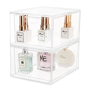 Show moreIntroducing the **Yieach 2 Pack Stackable Makeup Organizer Storage Drawers**, the ultimate solution for all your organizational needs! Made from high-quality, durable BPA-free plastic, these clear acrylic bins not only offer a stylish touch to your home, but they also provide the perfect combination of functionality and visual appeal. Each organizer measures **7.5"D x 6"W x 4.4"H**, making them compact yet spacious enough to easily store a variety of items from makeup and toiletries to kitchen essentials and craft supplies. These versatile storage drawers can be stacked efficiently or placed side by side to maximize your storage potential, ensuring your spaces are neat and tidy without compromising on style.