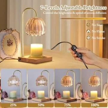 YIEELOG Candle Warmer Lamp with Timer, Dimmable Candle Melter Lamp for Small & Large Jar Candles, Top Down Electric Melting Lamp, Vintage Candle Heater Light for Scented Candles(Amber)