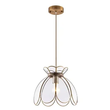 Show moreIntroducing the Yifi Deco 12" Vintage Brass Pendant Light Fixture, a stunning addition to any space that marries captivating aesthetics with functional design. Inspired by the elegance of oriental culture, this beautifully crafted lamp features a lotus flower glass pendant shade that measures a noteworthy 12 inches in diameter, providing a striking focal point in your home. The clear glass construction enhances its vintage charm while allowing for a versatile light effect, making it a perfect match for various decor styles. Notably, this light fixture is not just visually stunning but also built with quality materials, including copper bonded with brass, which offers resistance to oxidation and corrosion. Your new pendant light guarantees durability and performance, ensuring that it remains a cherished enhancement in your home for years to come.