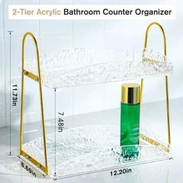 YIGII 2-Tier Bathroom Counter Organizer, Acrylic Makeup Organizer for Vanity, Bathroom Perfume Organizer Tray, Clear Skincare Organizer Countertop for Dresser, Gold