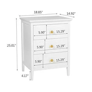 YIGOBUY 3 Drawer Nightstand White Side Table 19" Bedroom Night Stands End Table for Living Room Bedroom with Storage 1 Set Bedroom Furniture
