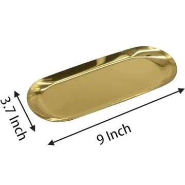 YIKANGHENG 4 Pcs 9 Inch x 3.7 Inch Gold Stainless Steel Trinket Tray, 110g