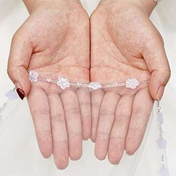 Yikisdy 1 Tier Wedding Bridal Veil Waist Length Short Bride Tulle Veil with Comb Pearl and Flower Edge (A-White)