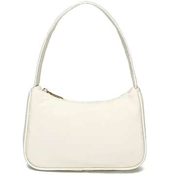 YIKOEE Small Nylon Shoulder Bags for Women Elegant Feminine Mini Handbags with Zipper Closure (Beige)