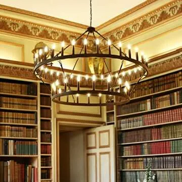 Yikrfiae Black Wagon Wheel Chandelier 2 Tier 54-Lights 60 Inch Extra Large Farmhouse Pendant Light Fixture, Round Rustic Hanging Lighting for Dining Room Kitchen Island Foyer Entryway