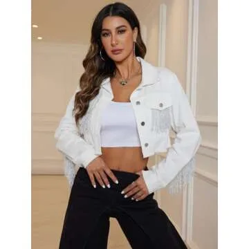 YILANUOYI Women’s Crop Denim Jacket Tassel Casual Jean Coat With Fringe(S107White,M)