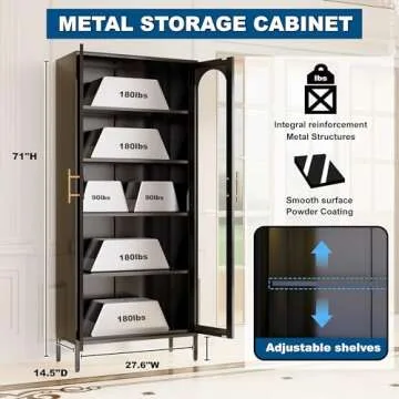 Show moreIntroducing the YILFANA 71" Tall Glass Display Cabinet, a stunning blend of functionality and elegance that adds a sleek touch to any room. This versatile curio cabinet features 3C certified glass doors that not only enhance the aesthetic appeal but also provide a crystal-clear view of your cherished items. With its robust construction from high-quality steel, this display cabinet promises durability and outstanding performance. Standing at 71" tall and measuring 27.6" wide, it serves as a perfect showcase for trophies, collectibles, and kitchen utensils while effortlessly complementing contemporary home and office decor.