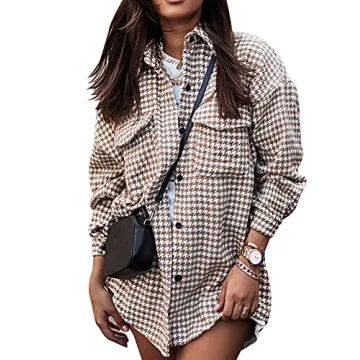 Show more Introducing the ultimate wardrobe staple for the fashion-forward woman: the Stylish Plaid Shacket! This trendy piece effortlessly blends comfort and style, making it a must-have addition to any closet. Made from a high-quality blend of polyester and cotton, this shacket promises to provide a soft and comfortable fit that's perfect for those chillier days. The classic plaid design, accentuated by a chic houndstooth pattern, adds a touch of sophistication and elegance to your outfit. Whether you’re heading out for a casual brunch or getting ready for a cozy evening with friends, this shacket will keep you looking effortlessly stylish.