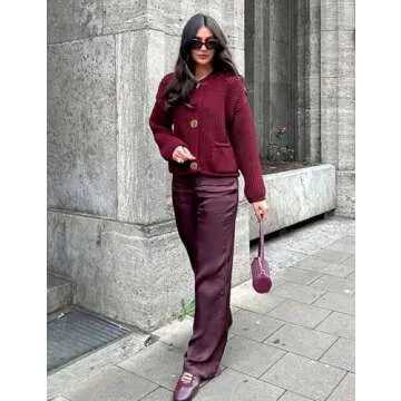 Yimoon Womens Cropped Cardigan Sweaters Gold Button Down Chunky Knit Sweaters Long Sleeve Open Front Fall Crochet Cardigan(DarkRed-S)
