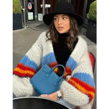 Yimoon Womens Oversized Chunky Cardigan Colored Striped Open Front Cardigan Top Lantern Long Sleeve Knit Sweater Coat(Beige-M)