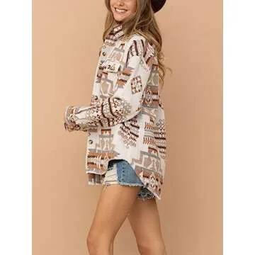 Yinawsky Women's Casual Aztec Shirt Jacket Button Down Vintage Style