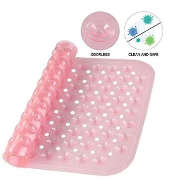 YINENN Bath Tub Shower Stall Mats 31x15.5 Inch Non-Slip and Latex Free, Bathtub Mat with Suction Cups, Machine Washable Bathroom Mats with Drain Holes (Light Pink)