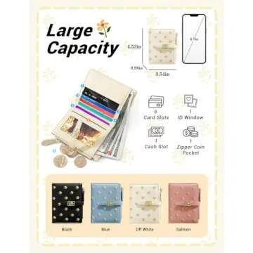 YINHEXI Women's Wallet, Faux Leather, Off White, Water Resistant, 5 Card Slots, 1 Cash Slot, 1 ID Window, 1 Zipper Coin Pocket, Portable, Fashionable, 4.53.71.2 Inch