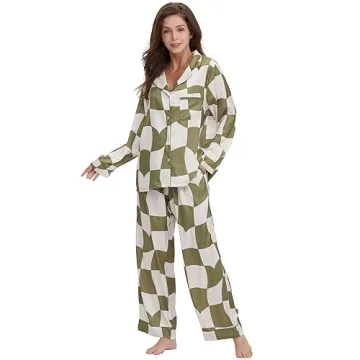 Show moreImmerse yourself in the luxurious embrace of the YiNi LuLu Women's Silk Satin Pajamas Set, where elegance meets ultimate comfort. Crafted from a high-quality, silky satin fabric that caresses your skin, this beautifully designed two-piece pajama set is perfect for a cozy night in or a lavish sleepover. Featuring a stylish button-down front and an elastic waistband, these pajamas not only enhance your nighttime aesthetic but also ensure a perfect fit tailored for relaxation. With its rich green plaid design, this set is as visually stunning as it is practical, making it an ideal addition to your nighttime wardrobe or an unforgettable gift for your loved ones.