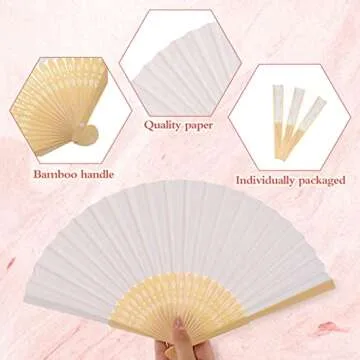 Yinkin 100 Pack Folding Fans Bamboo Handheld Folded Craft Hand Japanese Chinese Fans for Weddings Bridal Dancing Church DIY Decoration Women Kids Gift Party Favors (White)